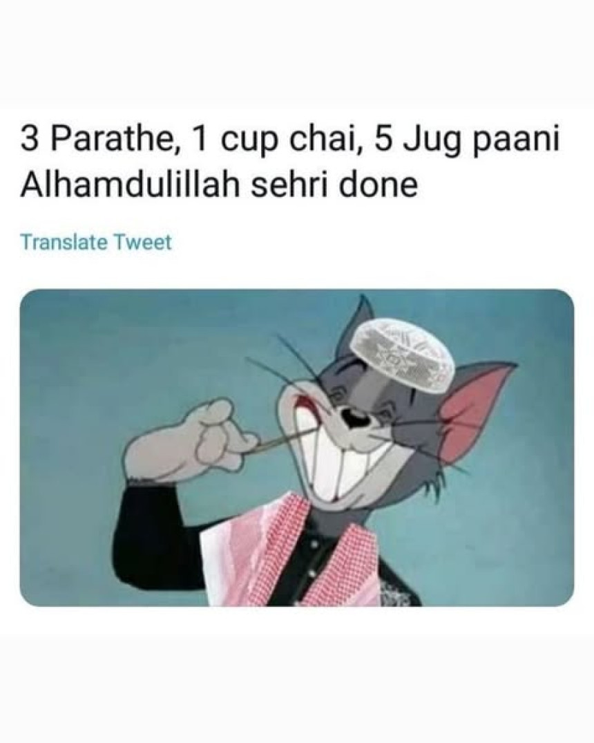 3 Parathe, 1 cup chai, 5 Jug paani Alhamdulillah sehri done
